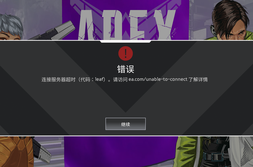 apex英雄游戏中出现连接服务器失败、超时(代码:leaf)的问题一般是网络质量差引起的,要解决这个问题也是非常简单的。下面分享解决办法。
